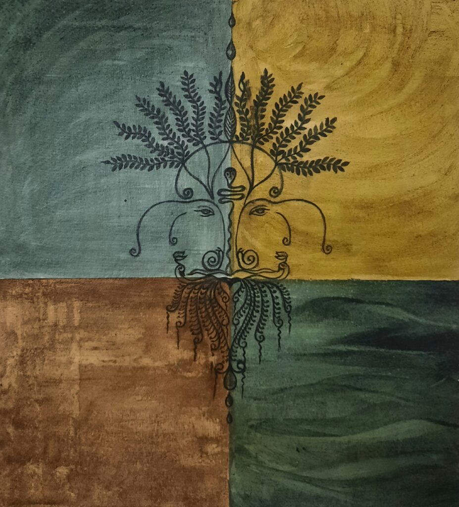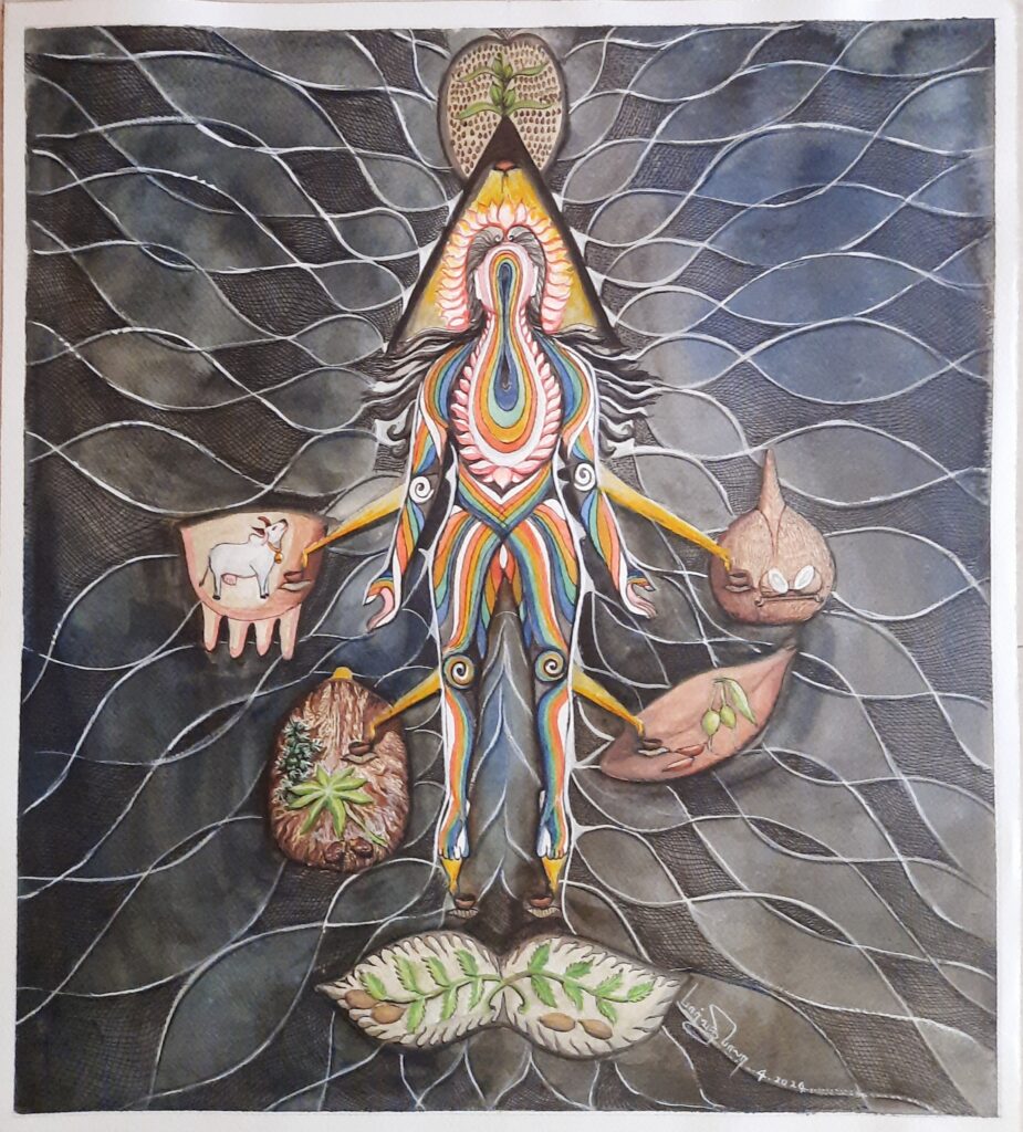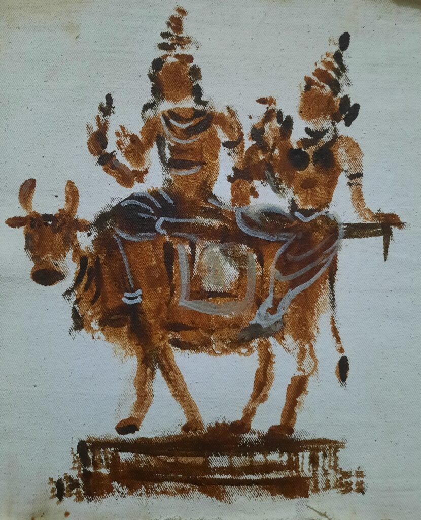 (இயற்கை வண்ணங்களைக் கொண்டு கைரேகைகளால் வரையப்பட்ட ஓவியம்)