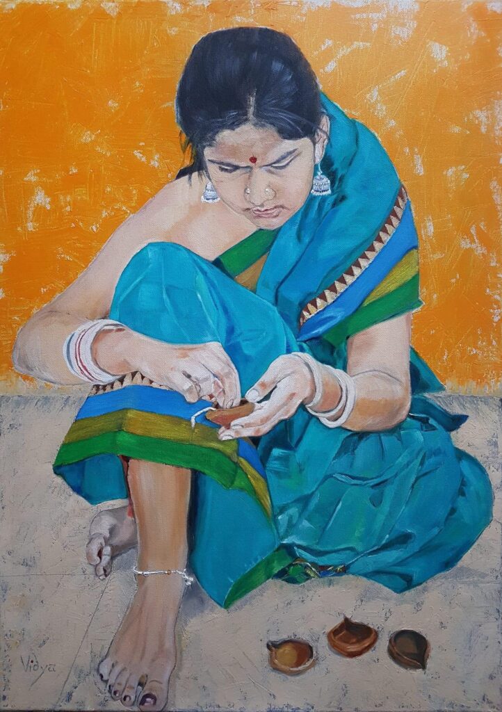 வித்யா விவேக் ஊட்டியில் பிறந்தவர். மார்க்கெட்டிங் மற்றும் மனிதவளத்துறையில் பட்ட மேற்படிப்பை முடித்துள்ள இவர் பள்ளி, கல்லூரிப் பருவங்களில் கைவினைப் பொருட்கள் தயாரிப்பதில் பெரும் ஈடுபாடு கொண்டவராக இருந்துள்ளார். இயற்கையும் இறையும் மட்டுமல்லாது மரபார்ந்த சிந்தனைகள், வாழ்வியல் இவரின் வண்ணங்களில் பெரும் பங்கு வகிக்கின்றன. அன்றாட வாழ்வை உருவ ஓவியங்களாக்க வேண்டும் என்பதில் பெரு விருப்பமுடையவராகத் திகழ்கிறார். தன் தந்தையின் பணிநிமித்தம் காரணமாக அரவங்காடு, நாக்பூர் என வெவ்வேறு இடங்களில் புலம்பெயர் வாழ்வை மேற்கொண்டவர், 2018 ஆம் ஆண்டு முதல் அயர்லாந்தில் உள்ள டப்ளின் நகரில் வசித்து வருகிறார். அங்கு பிறநாட்டுக் கலைஞர்களுடன் இணைந்து கலைச் செயல்பாடுகளை ஒருங்கிணைத்து வருகிறார்.